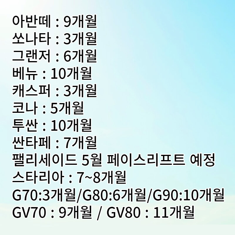 이상 지금까지 현대자동차 22년 5월 출고 납기 일정을 알아보았습니다.