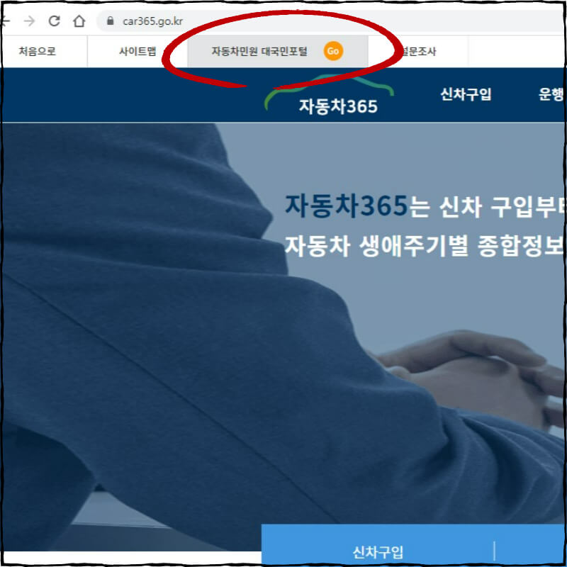 좌측 상단에 위치한 '자동차민원 대국민포털'을 선택합니다.