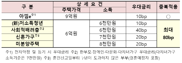 | 우대형 (주택6억↓ or 부부소득 1억↓) |