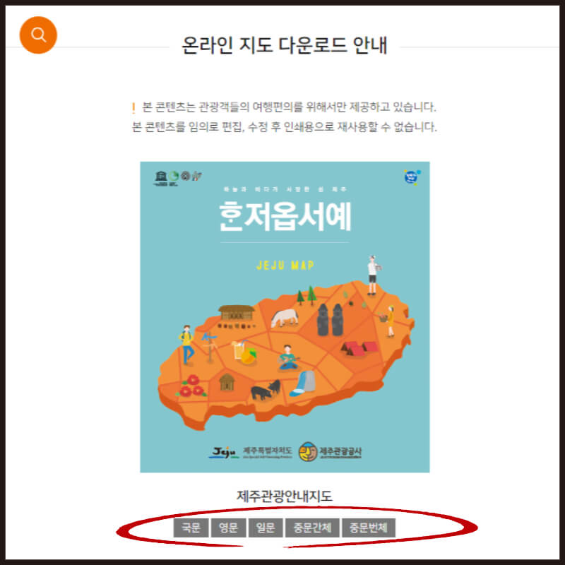 제주관광공사 홈페이지에는 여러 가지 관광지도를 내려받을 수 있습니다.