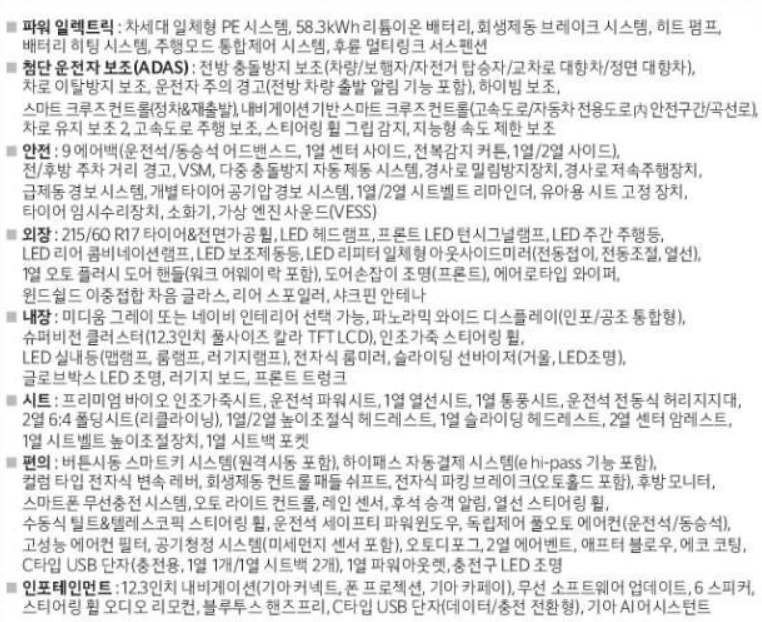 에어스탠다드 + 컨비지언스(V2L) + 드라이브 와이즈(안전)가 좋아보입니다.