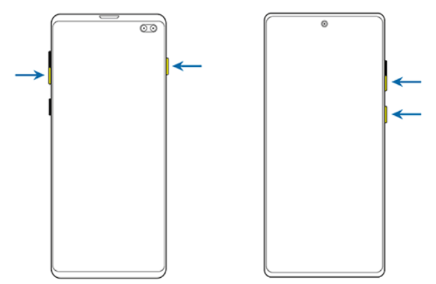 1. 전원 버튼과 볼륨 하 버튼을 동시에 약 7초에서 10초 이상 길게 눌러주세요.