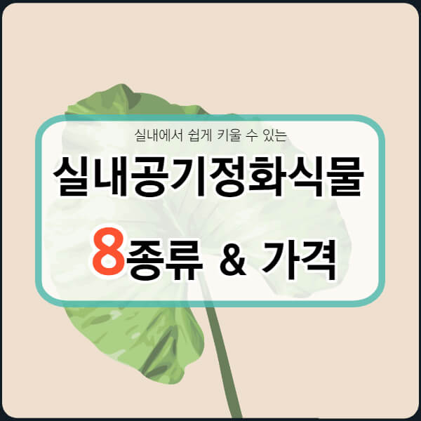 나사에서 실내공기정화식물 50가지를 발표한적이 있는데, 지금부터 알려드릴 8가지 식물은 실내에서 키우기 쉽고, 가격대가 부담되지 않는 수준으로 정리하였습니다. 식물의 가격은 사이즈에 따라 천차만별입니다. 아래 소개하는 식물의 가격은 화분 미포함에 작은 사이즈 기준입니다.