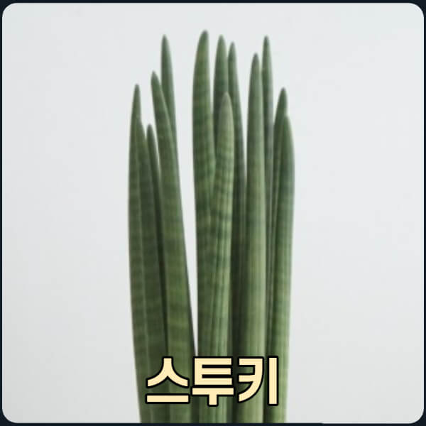 스투키는 최근 주변에서 흔하게 볼 수 있는데, 아프리카 열대지역이 원산지인 원통형 식물입니다. 스투키는 최대 1m까지 성장하고, 오이와 비슷한 생김새로 잎이 둥글게 말리면서 길게 성장하는 식물입니다.