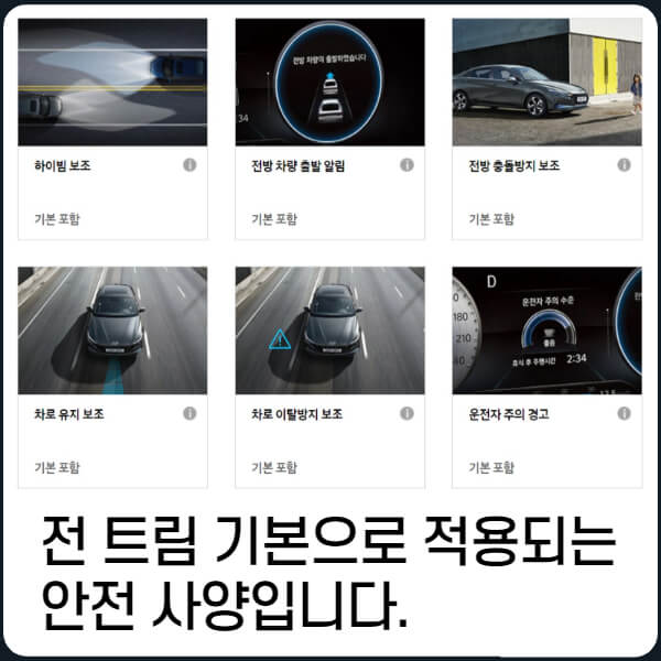 아반떼 CN7은 가장 낮은 스마트 트림부터 안전사양이 대폭 적용되어 누구나 안정적인 드라이밍이 가능하다는 것을 알리는 현대의 철학이 담긴 차량입니다. 아반떼 CN7은 다양한 트림과 선택 옵션이 있으니 위 내용을 참고하여 자신에게 가장 어울리는 옵션을 선택하시기 바랍니다.
