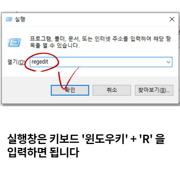 regedit를 실행하기 위해 실행창을 열어야 합니다.