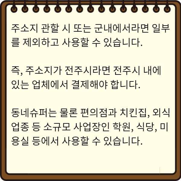 즉, 주민등록등본상 주소지가 전주시라면 전주시 내에 있는 업체에서 결제해야 합니다.