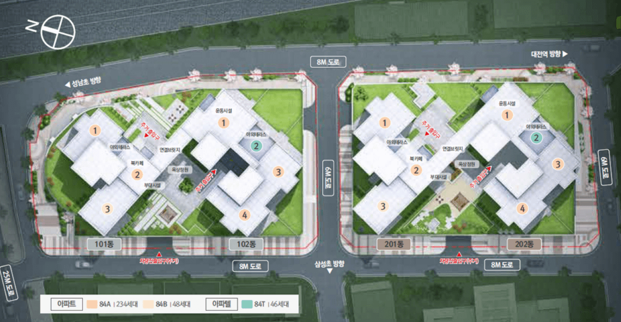 대전역 대라수 어썸브릿지는 국민평형인 84타입 A, B 단일 평형으로 구성됩니다.