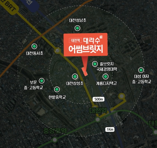 대전역 대라수 어썸브릿지 입지
