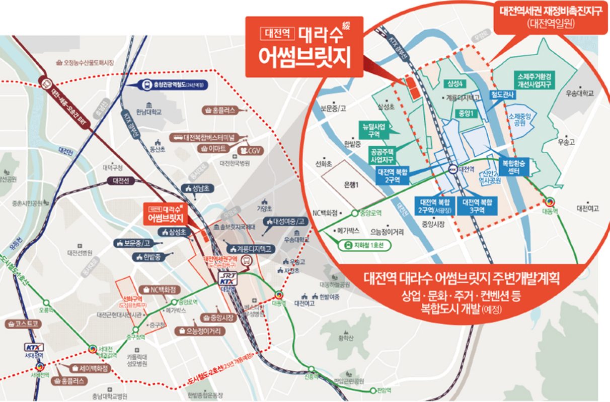 대전역 대라수 어썸브릿지는 대전역세권 재정비 촉진지구로 지정되어 다양한 개발호재가 기대되는 곳입니다.