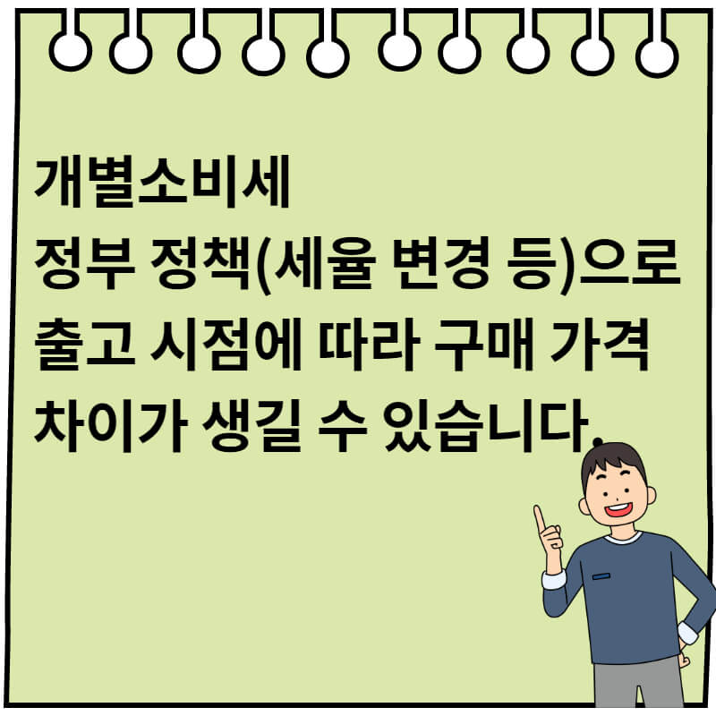 세율 변경 등의 정부 정책으로 출고 시점에 따라 구매 가격의 차이가 발생할 수 있음을 참고 바랍니다.