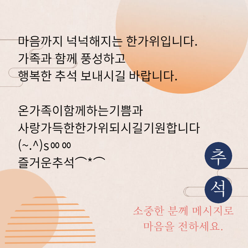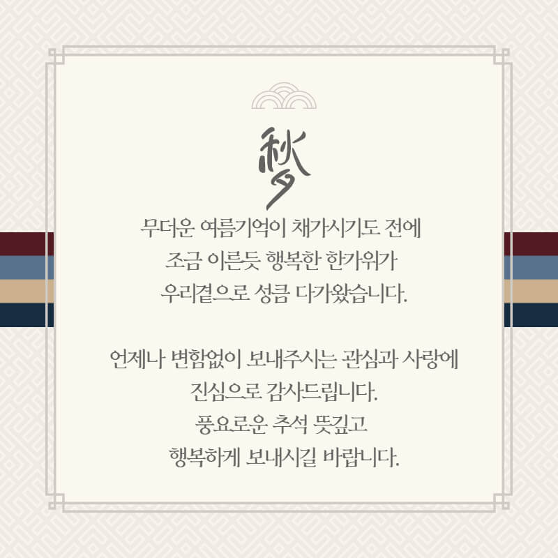 풍요로운 추석 뜻깊고 행복하게 보내시길 바랍니다.
