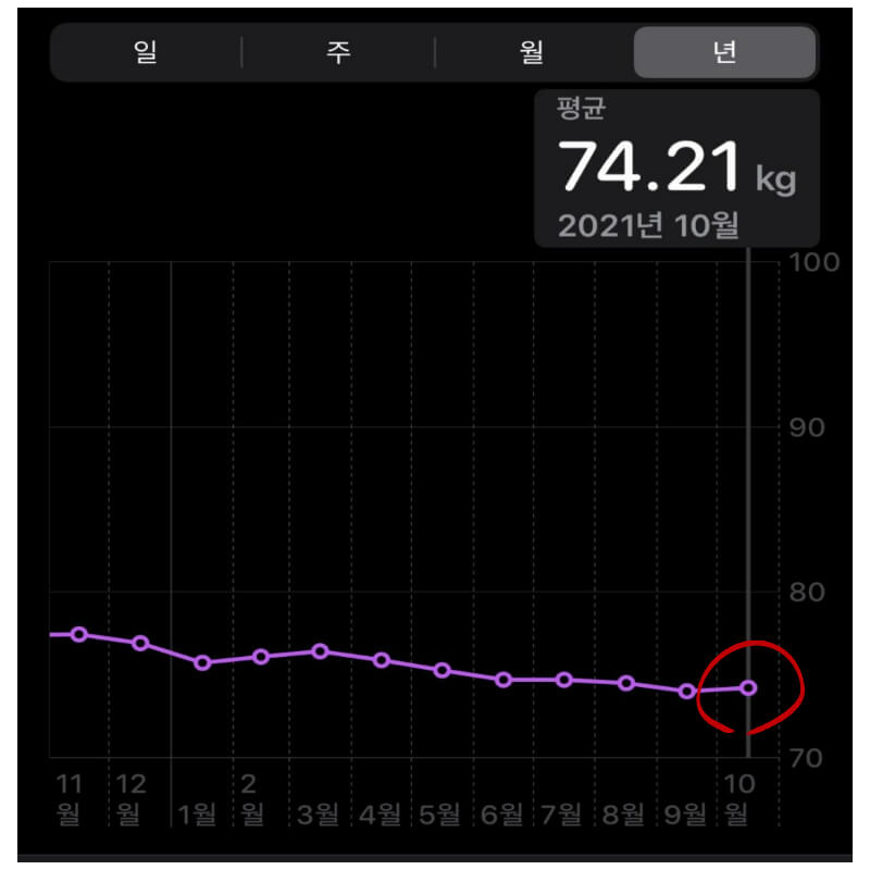 그래프에 나와있지만 지난 1년 정도는 몸무게에 큰 변화가 없습니다.