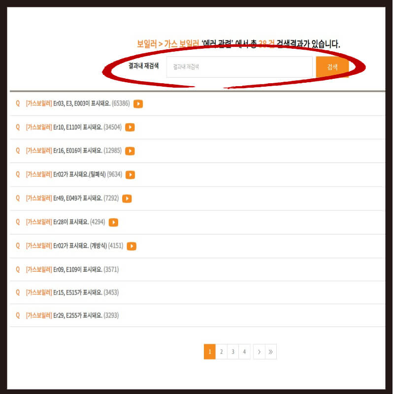컨트롤러에 발생한 에러코드 숫자를 입력 후 검색합니다.